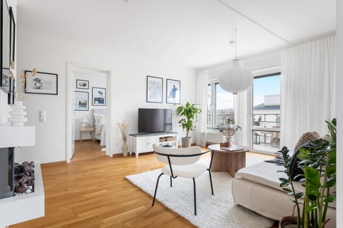Högst upp i huset finner ni denna ljusa lägenhet som innefattar en stor balkong i söderläge, ett rymligt vardagsrum med plats för en större soffgrupp samt två väl tilltagna sovrum med gott om förvaring (det större med garderobsvägg). Utöver det har bostaden ett modernt kök med matplats som nås via vardagsrummet, och gör att hela lägenheten blir social och optimal för större härliga tillställningar med familj och vänner. Lägenheten har genomgående ekparkett och ljusa fräscha ytskikt. Det helkaklade badrummet är stort och modernt och har både tvättmaskin och torktumlare, nu slipper du alla jobbiga turer till tvättstugan! Till bostaden hör även ett vindsförråd.