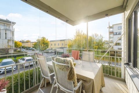 Lägenheten har ljusa, moderna ytskikt och en stor inglasad balkong som förlänger sommaren, med sol från morgon till tidig eftermiddag. Planlösningen är mycket väl genomtänkt, med tre rymliga sovrum, ett stort badrum utrustat med både tvättmaskin och torktumlare, samt en separat gästtoalett. Hallen är inbjudande och har gott om plats för förvaring och avhängning.