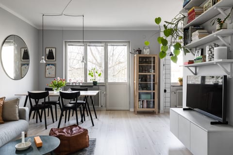 Smakfullt renoverad tvåa med öppen planlösning och balkong i lummigt sydvästläge