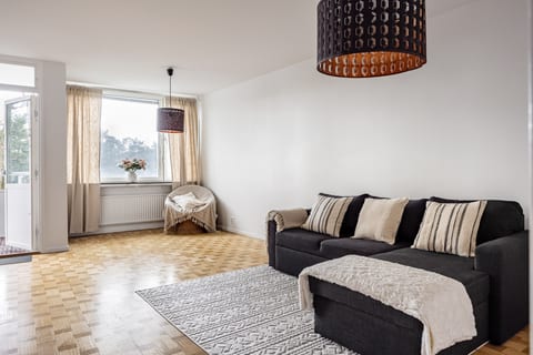 Bostaden är välplanerad med generösa sällskapsytor, tre rofyllda sovrum samt både badrum och separat wc. Köket är praktiskt planerat med god förvaring och utrymme för matbord som ger plats för familj och vänner. Planlösningen erbjuder både gemenskap och avskildhet, perfekt för familjeliv eller för den som vill ha plats för gäst och arbetsrum. Vardagsrummet öppnar upp mot en stor balkong i sydvästläge med utsikt mot grönska. Här bor man dessutom helt insynsskyddat, vilket ger en sällsynt känsla av lugn och avskildhet.