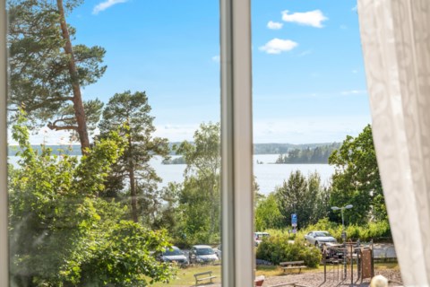 Här bjuds ni på vackra vyer över Mälaren, grönskande omgivningar och en himmel som skiftar i takt med årstidernas och vädrets växlingar. De generösa fönsterna ramar in naturen och Mälarutiskten tack vare bostadens fria läge. En av de bästa platserna i bostaden är den inglasade balkongen som fungerar som ett extra rum från tidig vår till sen höst. Här kan ni njuta av stilla dagar, soliga eftermiddagar och magiska solnedgångar.