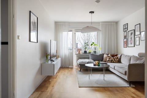 Ljus funkispärla högst upp i huset omgiven av trädtopparna!