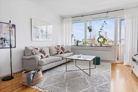 Genom den eleganta glasdörren tar vi oss in till det stora vardagsrummet där det charmiga original parkettgolvet bibehållits. I vardagsrummet skapas ett enastående ljusinsläpp tack vare det stora fönsterpartiet. Från vardagsrummet tar vi oss även ut till den rymliga balkongen i sydvästläge, här får vi njuta av solen från lunchtid fram till kväll! Varmt välkommen att kontakta mäklaren för ytterligare information om bostaden.