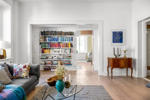 Tilltagna sociala ytor finns också i det härliga vardagsrummet! Likt köket kan man njuta av ljuset tack vare de dubbla fönsterpartierna och här drar du även nytta av bostadens gavelläge då ljuset även kommer in från anslutande sovrum.