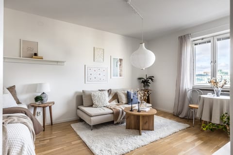 Här kan du njuta av en perfekt planerad bostad som upplevs som betydligt större med sin yteffektiva planlösning. Lägenheten har uppdaterats med bland annat ett modernt, fullutrustat kök i halvöppen planlösning med vardagsrummet, vilket bjuder in till härliga mingel med dina glada vänner. Den optimalt planerade lägenheten är i fint skick, belägen på 7:e våningen med härlig utsikt mot himlen. Läcker arkitektur i kulturmärkt 50-tals funkis-hus med en rymdgivande takhöjd om 2,6 meter. Lättmöblerad bostad med naturlig plats för samtliga funktioner såsom bred säng, vardagsrumssoffa och matplats som med t.ex. ett klaffbord kan dukas för många! Det här är ett hem som kombinerar ljus, funktion och ett fantastiskt läge – en bostad att trivas i och längta hem till.