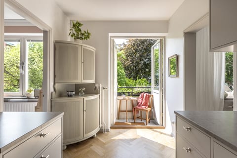 Smakfullt renoverad lägenhet med fantastisk utsikt över härlig grönska. Skuldfri förening!