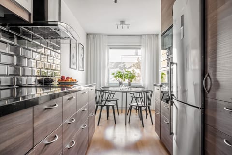 Denna fina och renoverade 2,5:a belägen 2 tr upp har genomgående enhetliga detaljer och en tilltalande planlösning. Här finns det goda förvaringsmöjligheter som fördelar sig över en väldigt social planlösning. Bostadens 63 kvm inleds med en luftig hall med klinkers och en rymlig klädkammare. Vidare i bostaden finner du ett rymligt sovrum med goda förvaringsmöjligheter i form av en garderob. Även ett helkaklat badrum är enhetligt inrett och erbjuder golvvärme, tvättmaskin, dusch och tvättställ. Ett stort och ljust vardagsrum delvis avskärmad med en industrivägg ger dig möjligheten till att inreda ett barnrum. Via vardagsrummet når du även den möblerbara, insynsskyddade balkongen. Köket är stilrent och renoverat med full maskinell utrustning och möjlighet till matplats intill fönsterpartier.