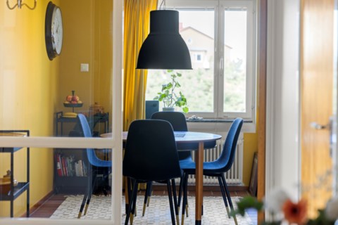 Rikligt ljusinsläpp, harmoniska färger och en vidsträckt utsikt bjuds du på i denna fina 60-talspärla. Rymligt vardagsrum med utgång till den inglasade balkongen som erbjuder härlig eftermiddag/kvällssol. Stort originalkök med gott om plats för matbordet och ditt allra bästa sällskap. Här finns även den charmiga glasväggen mot hallen bevarad. Lättmöblerat sovrum samt ett helkaklat och stambytt badrum. Rymlig hall med praktisk klädkammare. Till lägenheten ingår det även ett vindsförråd.