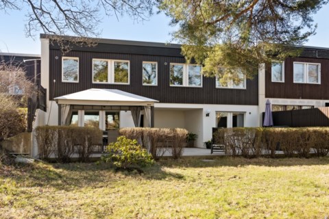 Drömboende i Norra Sköndal – Stilfullt radhus med japaninspirerad atriumgård och underbart parkläge!