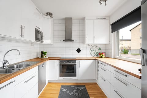 Kompakt och smart ombyggd fyra med två våtrum – perfekt familjeboende i markplan med solig balkong!