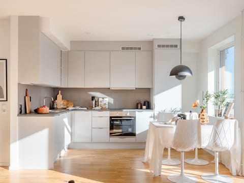 Vidare in i lägenheten finner ni en öppen planlösning mellan kök och vardagsrum. Längre in i bostaden finns ett sovrum med ordentliga garderober för god förvaring av kläder.