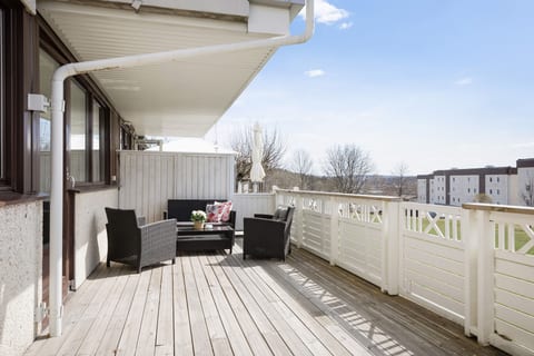 Som grädde på moset nås från köket den stora altanen som sträcker sig längs med hela bostadens bredd. Delvis skyddad av tak från ovanliggande balkonger är detta en plats att avnjuta härliga sommardagar, mysiga grillkvällar och har du gröna fingrar finns utrymme för detta. Stor gräsmatta framför och långt ner till nästa husgrupp gör detta till det perfekta läget.