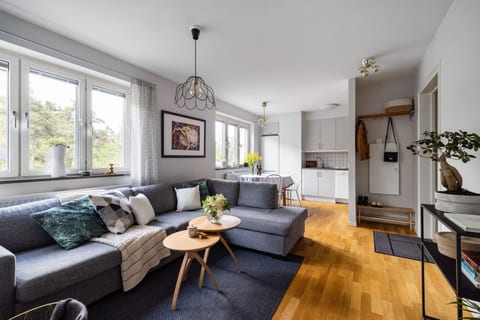 Lägenheten har ett ljust och insynsfritt läge med stora fönster som skapar ett härligt ljusflöde genom hela bostaden. Ytskikten är stilrena och den välproportionerade planlösningen gör lägenheten väldigt funktionell och trevlig. Från sovrummet når du den rymliga balkongen, som är belägen högt upp i huset och vänder mot söder. Här kan du njuta av soliga dagar och vacker utsikt över trädkronorna. Bostaden har en social och öppen planlösning som binder samman kök och vardagsrum på ett stilfullt sätt. Det moderna köket går i ljusa toner och är välutrustat. Dessutom finns ett stort badrum med tvättmaskin, vilket ger extra bekvämlighet. Som boende i denna fastighet tillhör du en välskött förening med god ekonomi och som äger marken (ej tomträtt).