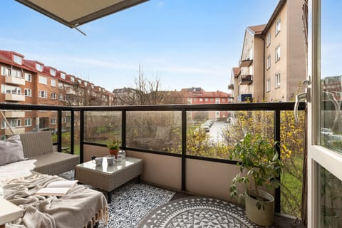 Ni välkomnas in i en rymlig hall med flertalet garderober och plats för både hatt- och skohylla. Vidare kommer ni till det ljusa och välplanerade vardagsrummet - på golvet ligger ett vackert parkettgolv och väggarna går i sober kulör. Vardagsrummet har stora fönsterpartier som ger ett fint ljus in till bostaden. Här möblerar ni med enkelhet med både soffgrupp & skrivbord. Här finner ni även en välplanerad sovalkov som är bra avskärmad från vardagsrummet. Från vardagsrummet tar ni klivet ut på den stora balkongen som är belägen i ett fantastiskt söderläge. Här kan ni njuta av solen under stora delar av dagen.