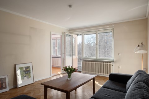 Välkommen till denna trivsamma och välplanerade tvåa om 60 kvm i populära Bodal. Här bor du högst upp i huset med ett härligt ljusinsläpp från stora fönsterpartier och utan insyn – ett hem som kombinerar klassisk 50-talscharm med moderna bekvämligheter. Lägenheten präglas av tidstypiska detaljer såsom vacker fiskbensparkett och stilrena fönsterbänkar i sten. Planlösningen är väl genomtänkt med ett ljust vardagsrum som enkelt rymmer både soffgrupp och övrigt möblemang i direkt anslutning till det rymliga köket med matplats. Det rofyllda sovrummet ligger i ett lugnt läge och erbjuder gott om förvaring tack vare en platsbyggd garderobsvägg i original. Här finns dessutom plats för dubbelsäng och ytterligare möbler om så önskas.Badrummet är stambytt och utrustat med tvättmaskin för en smidig vardag. Balkongen är något alldeles extra – den större varianten i föreningen. Med sitt skyddade, delvis indragna läge och sol från eftermiddag till kväll blir den en naturlig förlängning av bostaden. Här finns gott om plats för både loungemöbler, middagar och odling för den som uppskattar grönska.Läget är svårslaget med direkt närhet till Baggeby Torg med närservice, restauranger och goda kommunikationer via buss och Lidingöbanan. I närområdet finns dessutom vackra promenadstråk längs vattnet som gör det enkelt att njuta av naturen året runt. Du bor i en välskött förening där de stora renoveringarna redan är genomförda – en trygghet för dig som köpare. Välkommen på visning!